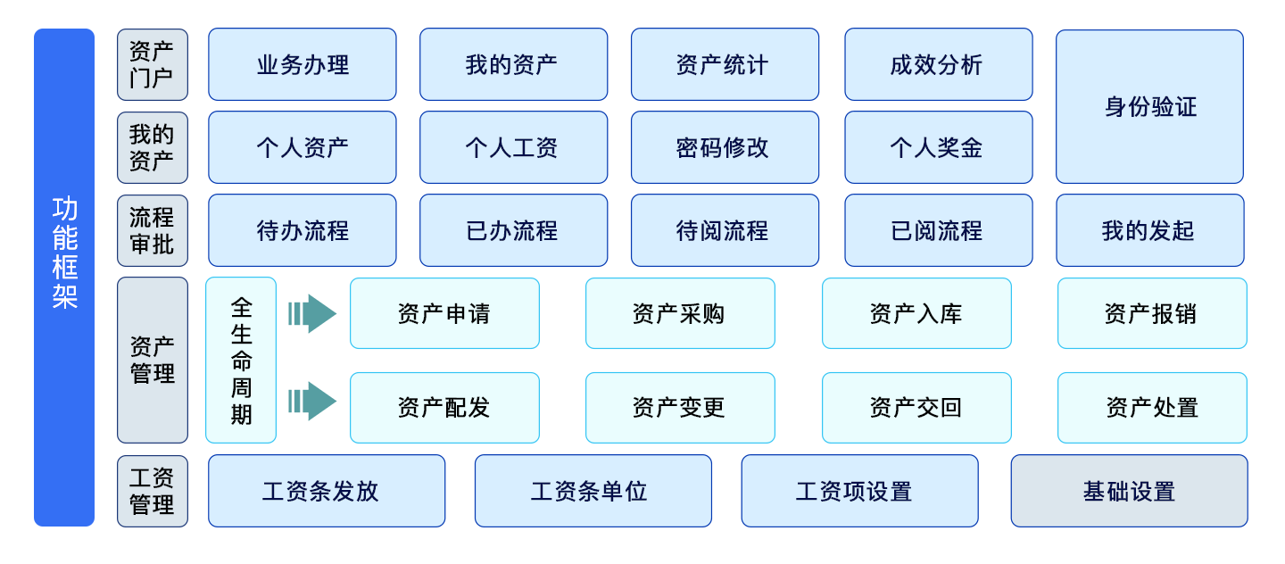 圍繞資產全生命周期,實現固定資產的申請、配發、采購、入庫、報銷和交回。