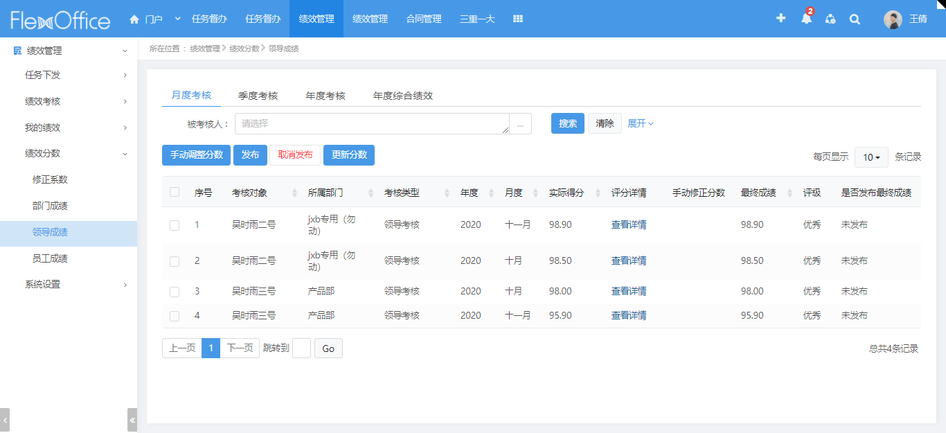 串聯起績效關系、考核任務、績效評分的數據集中存儲查詢;