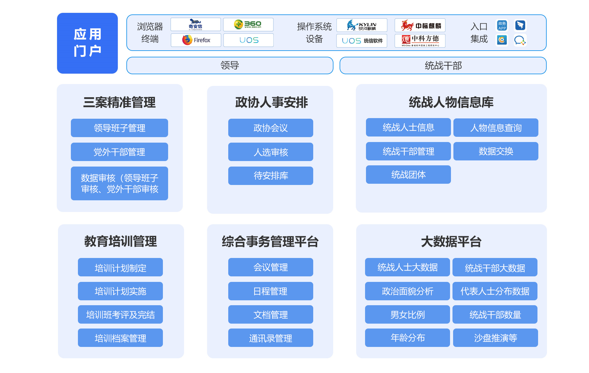 面向省、市、縣委統戰部,構建信息化、可視化、全周期、一體化的統戰工作大數據平臺