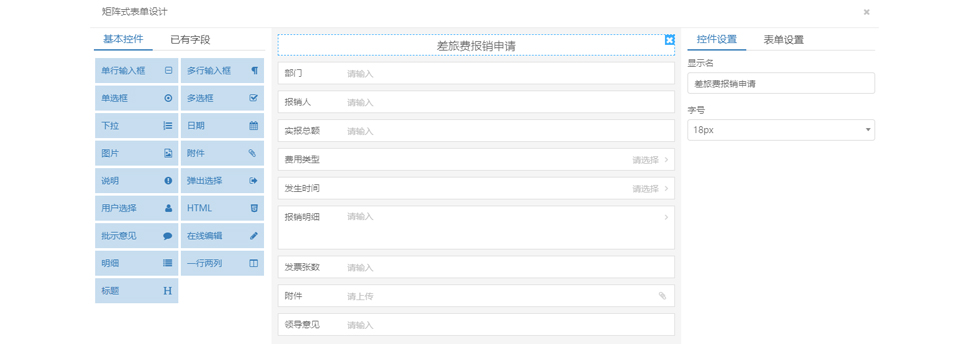 采用所見即所得的表單設計方式,實時預覽實際表單展現(xiàn)效果;提供HTML表單和矩陣表單設計,在PC端和移動端自由切換,同時滿足表單的多變風格和快速搭建需求。